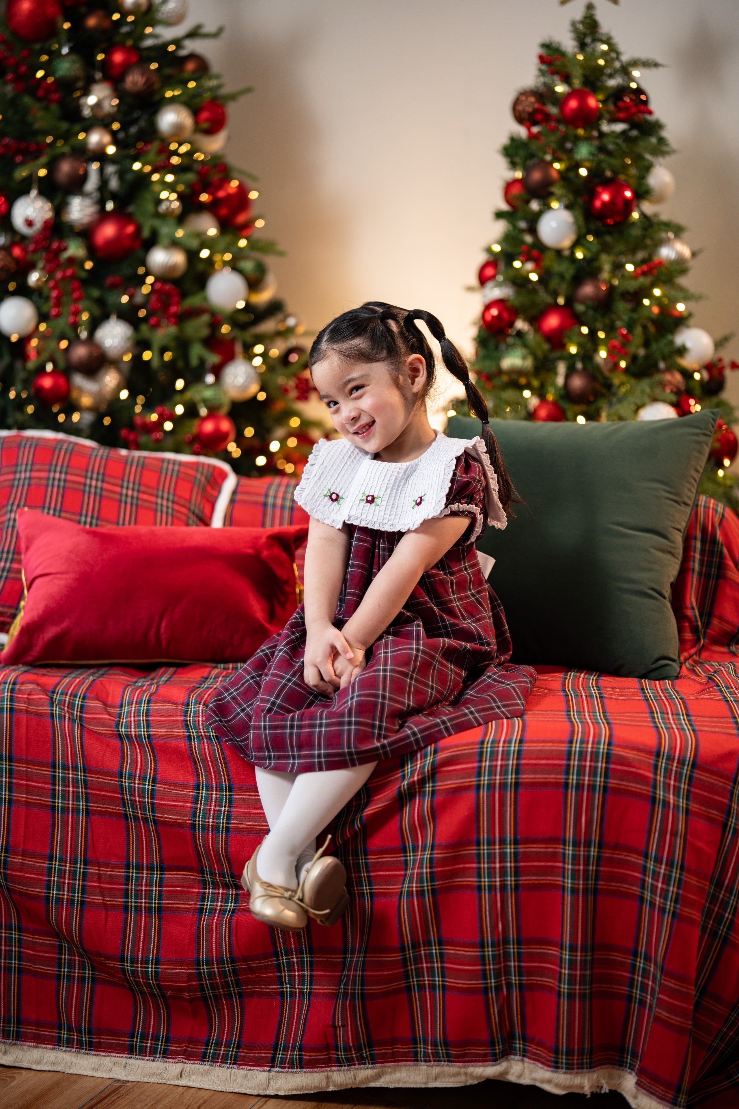Festive tartans, hand-embroidered roses, delicately hand-smocked bows, scallop collars, and a palette of rich reds and deep rubies. A Christmas collection crafted for the most magical season of all ❤️