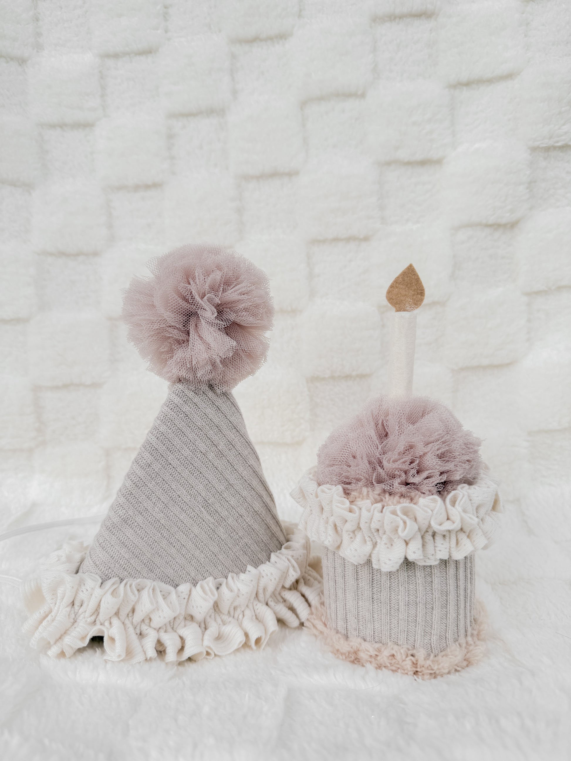 Inspired by soft neutrals, this mini set pairs creamy ivory tones with mocha ruffle trims for a timeless look. Finished with delicate textures and a petite candle topper, it’s the perfect heirloom piece to celebrate half-birthdays, first milestones, and every sweet occasion in between 🧁